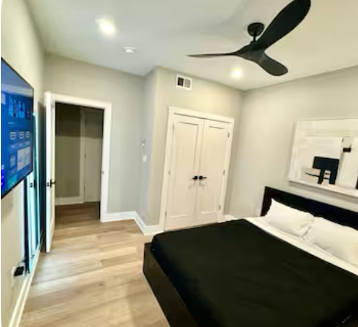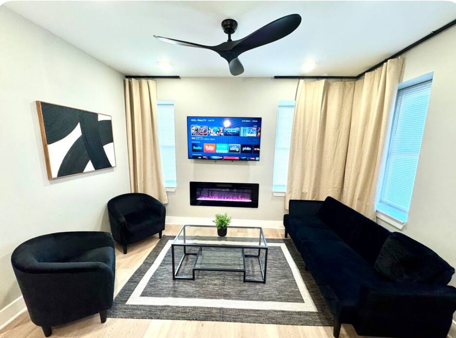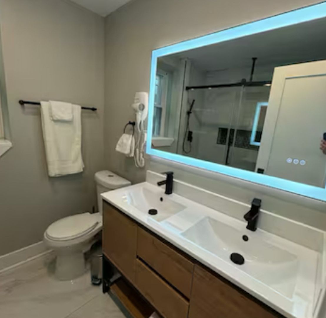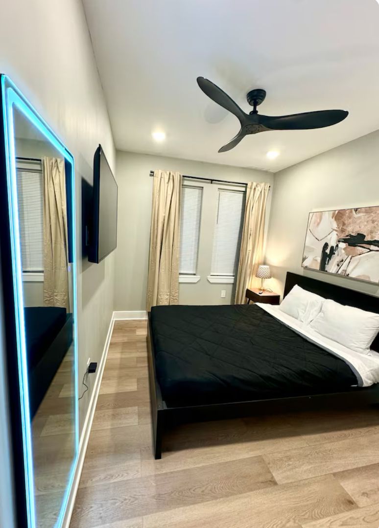 Experience a chic getaway at this centrally located apartment, just steps away from the boardwalk and beach. This brand-new space features a fully equipped kitchen complete with an island and all essential amenities. Relax in the living room, which boasts a futon sofa and offers beautiful views of the beach and boardwalk. The apartment includes three bedrooms, each furnished with queen beds and a TV for your entertainment. Enjoy a stylish and comfortable stay!