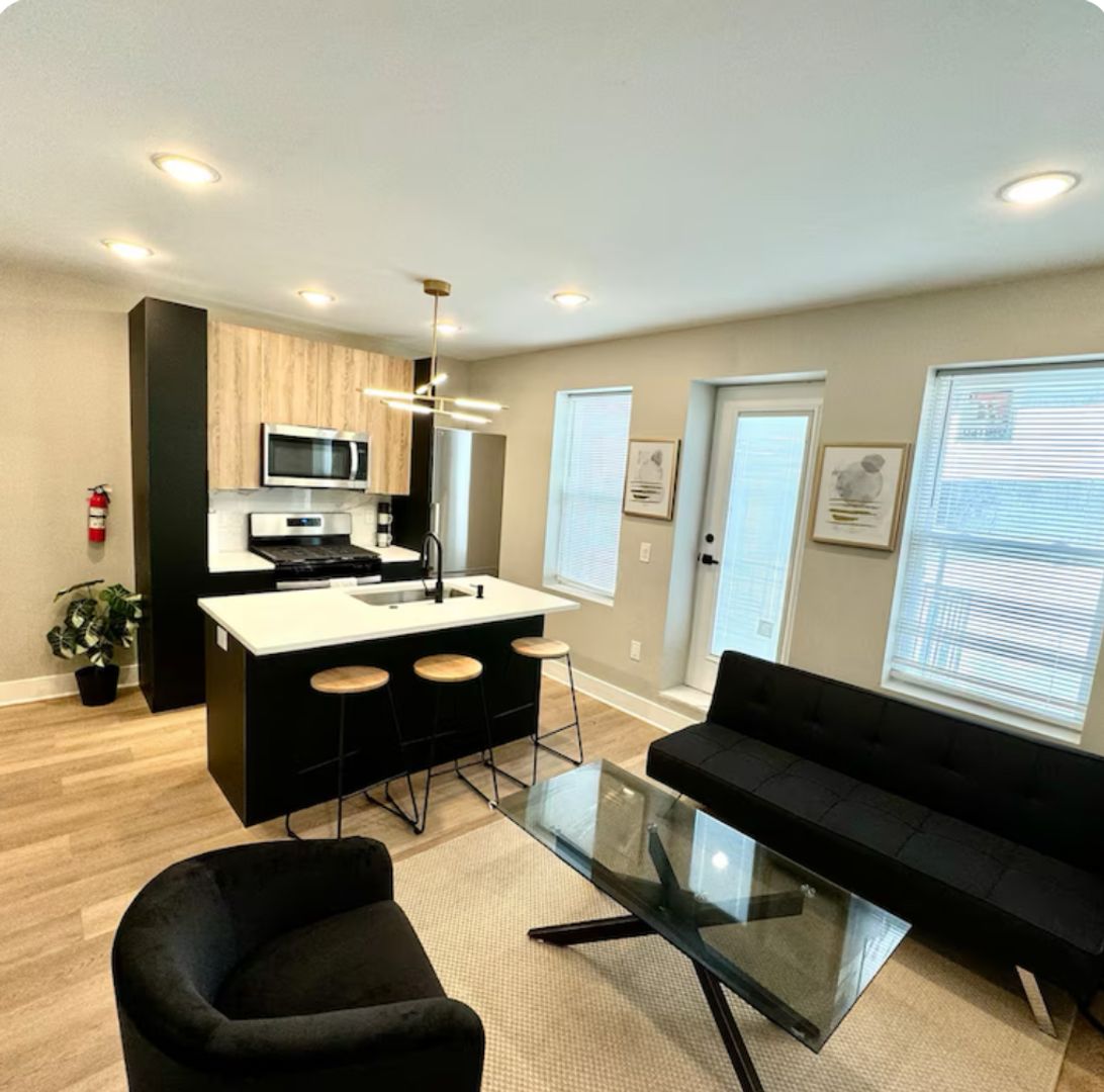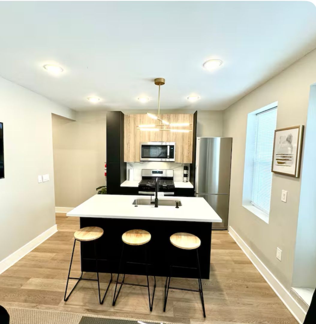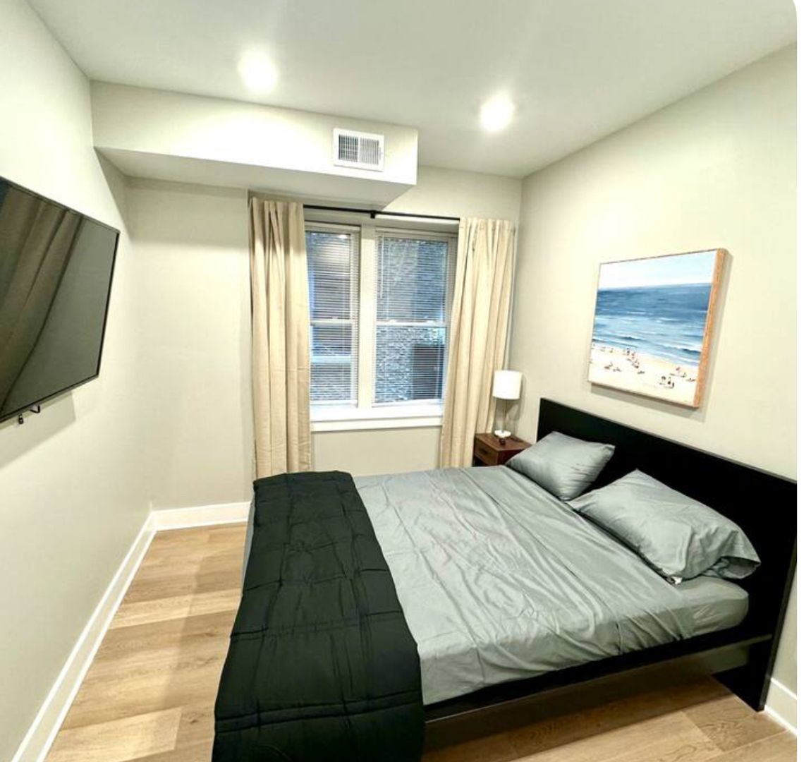 Relax in this serene and stylish space. 2 bedroom fully furnished,Enjoy a full kitchen equipped with a kitchen island and bar stools, along with a living room featuring futon sofas and a large TV. The two bedrooms offer queen beds, spacious closets, and flat-screen TVs. Located just a block from the beach in the second building from the boardwalk, you can easily walk to the casino while enjoying the safety and charm of Atlantic City's Chelsea district.