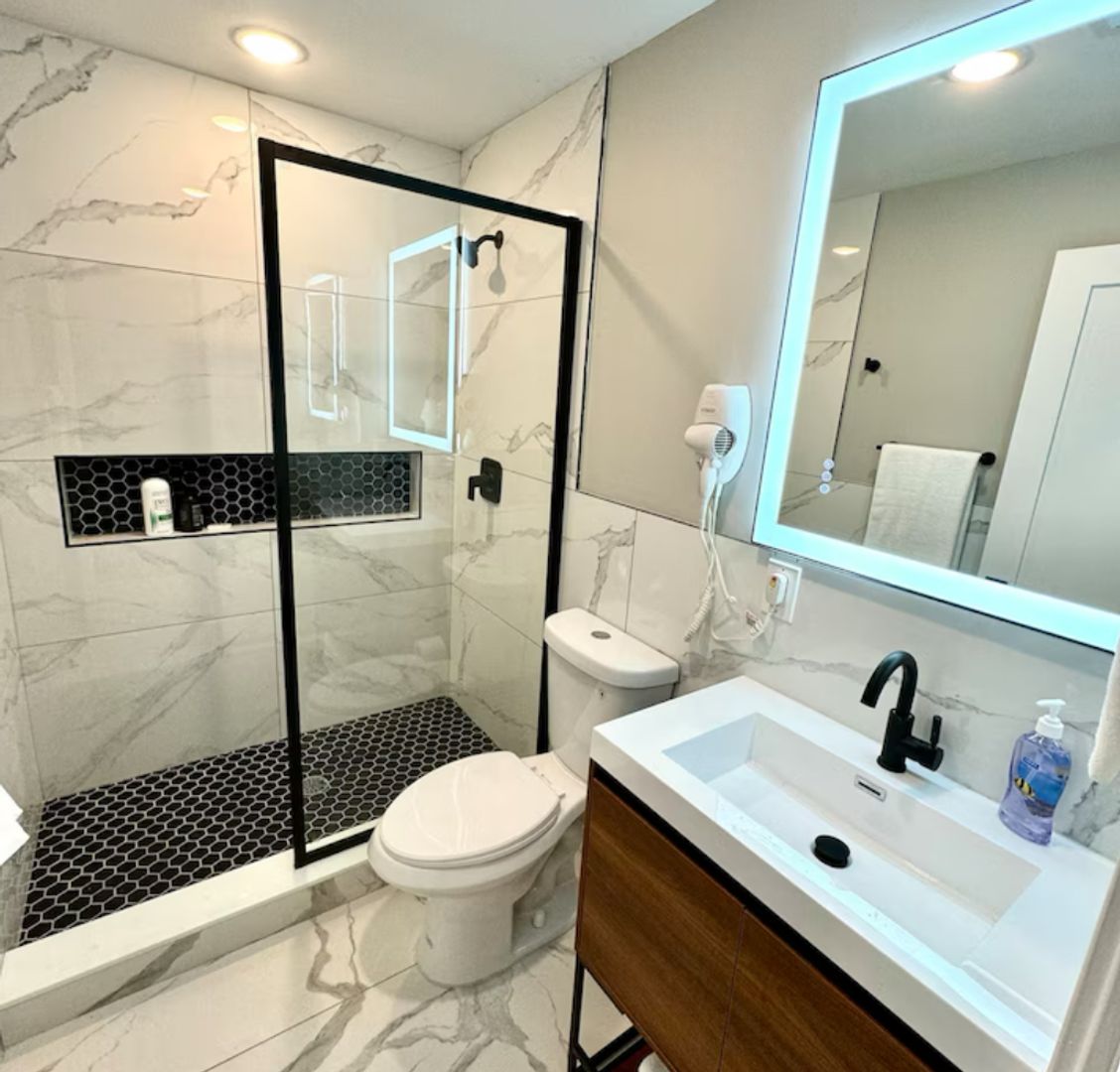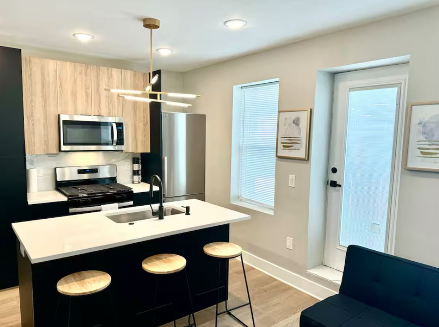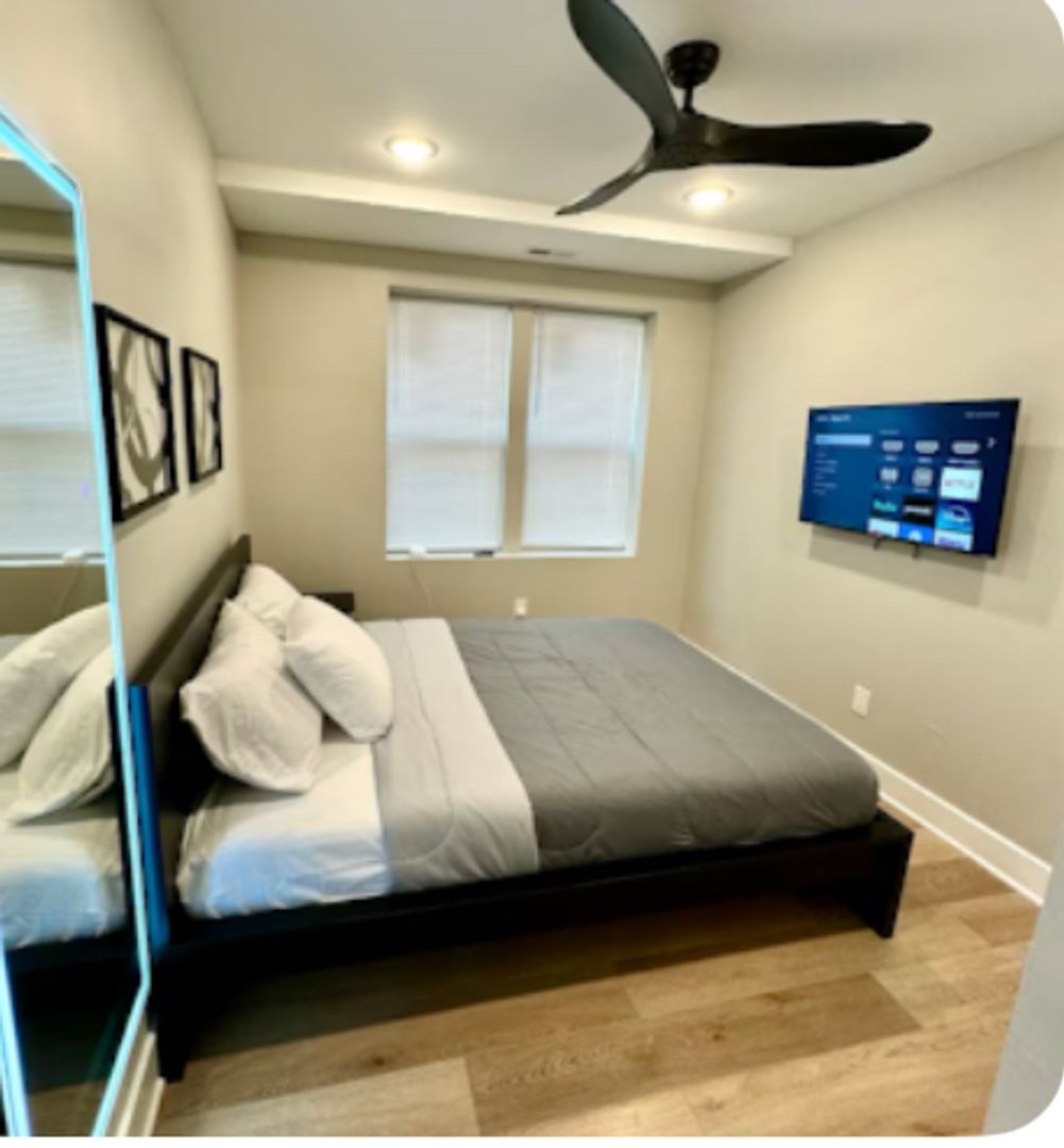 Relax in this serene and stylish space. 2 bedroom fully furnished,Enjoy a full kitchen equipped with a kitchen island and bar stools, along with a living room featuring futon sofas and a large TV. The two bedrooms offer queen beds, spacious closets, and flat-screen TVs. Located just a block from the beach in the second building from the boardwalk, you can easily walk to the casino while enjoying the safety and charm of Atlantic City's Chelsea district.