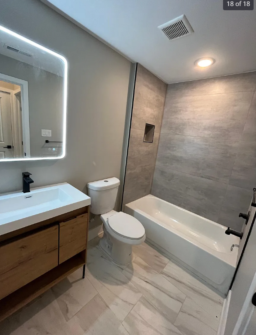 This unit is a Bi level with a back yard , 3 spacious bedroom, 2 full bathroom, and waterfall Island with all upgrade amenities.